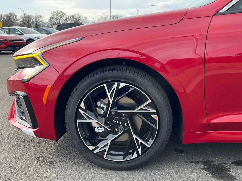 K5 GT-Line, 4D Sedan, AWD, Runway Red, Black, 4-Wheel Disc Brakes, 6 Speakers, AM/FM radio: SiriusXM, Auto High-beam Headlights, Automatic temperature control, Brake assist, Electronic Stability Control, Four wheel independent suspension, Front Center Armrest, Front dual zone A/C, Front fog lights, Heated door mirrors, Heated Front Bucket Seats, Illuminated entry, Navigation System, Overhead console, Remote keyless entry, Security system, Speed-sensing steering, Sport steering wheel, Steering wheel mounted audio controls, Turn signal indicator mirrors, Wheels: 18 x 7.5J Gloss Black Machined Finish Alloy.