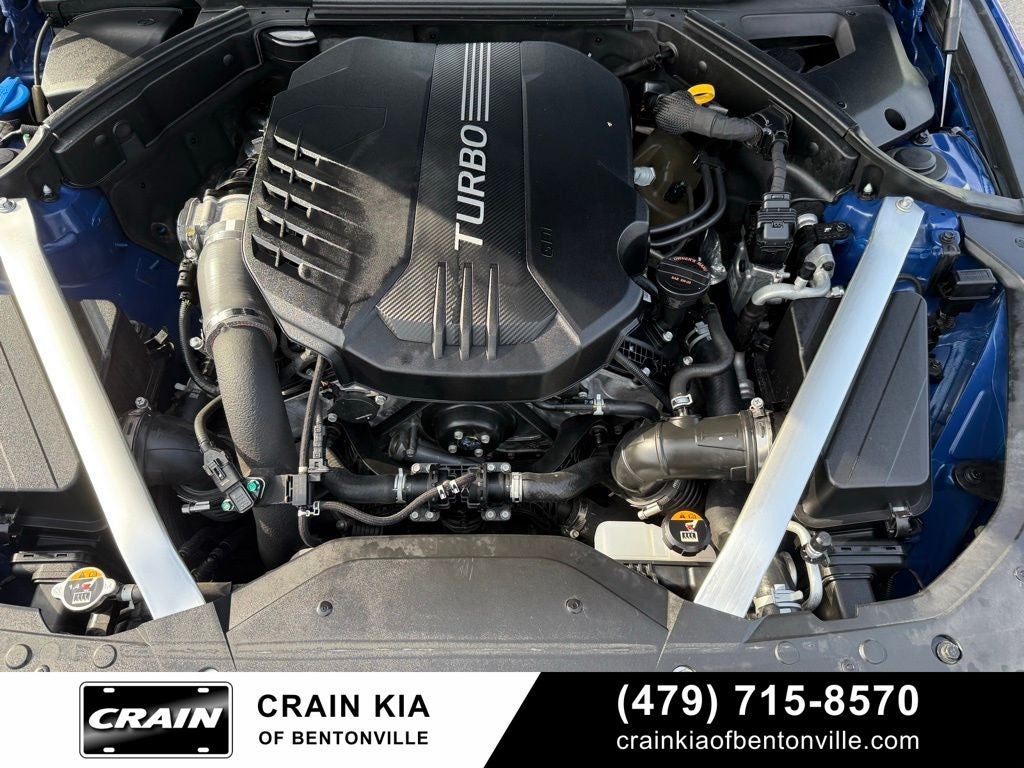 15 Speakers, 4-Wheel Disc Brakes, ABS brakes, Air Conditioning, Alloy wheels, AM/FM radio: SiriusXM, Android Auto & Apple CarPlay, Anti-whiplash front head restraints, Auto High-beam Headlights, Auto-dimming door mirrors, Auto-dimming Rear-View mirror, Automatic temperature control, Brake assist, Bumpers: body-color, Delay-off headlights, Driver door bin, Driver vanity mirror, Dual front impact airbags, Dual front side impact airbags, Electronic Stability Control, Emergency communication system: Genesis Connected Services, Exterior Parking Camera Rear, Four wheel independent suspension, Front anti-roll bar, Front Bucket Seats, Front Center Armrest, Front dual zone A/C, Front reading lights, Fully automatic headlights, Garage door transmitter: HomeLink, Heated & Ventilated Front Bucket Seats, Heated door mirrors, Heated front seats, Illuminated entry, Knee airbag, Leather Seat Trim, Low tire pressure warning, Memory seat, Navigation System, Occupant sensing airbag, Option Group 01, Outside temperature display, Overhead airbag, Overhead console, Panic alarm, Passenger door bin, Passenger vanity mirror, Power door mirrors, Power driver seat, Power passenger seat, Power steering, Power windows, Radio: AM/FM/HD Radio/SiriusXM Lexicon Audio, Rear anti-roll bar, Rear reading lights, Rear seat center armrest, Rear window defroster, Remote keyless entry, Security system, Speed control, Speed-Sensitive Wipers, Split folding rear seat, Steering wheel memory, Steering wheel mounted audio controls, Tachometer, Telescoping steering wheel, Tilt steering wheel, Traction control, Trip computer, Turn signal indicator mirrors, Variably intermittent wipers, Ventilated front seats.