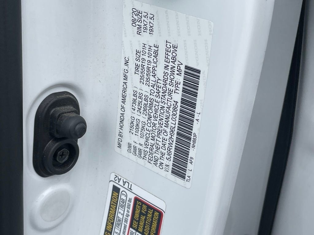 CR-V Touring, 4D Sport Utility, 1.5L I4 DOHC 16V, CVT, AWD, Platinum White Pearl, Black w/Leather Seat Trim, 4-Wheel Disc Brakes, 5.64 Axle Ratio, 9 Speakers, ABS brakes, Adaptive Cruise Control: Adaptive Cruise Control (ACC) with Low-Speed Follow, AM/FM radio: SiriusXM, Apple CarPlay/Android Auto, Auto High-beam Headlights, Auto-dimming Rear-View mirror, Automatic temperature control, Blind Spot Information (BSI) System warning, Brake assist, Bumpers: body-color, Compass, Delay-off headlights, Driver door bin, Driver vanity mirror, Electronic Stability Control, Exterior Parking Camera Rear, Forward collision: Collision Mitigation Braking System (CMBS) + FCW mitigation, Four wheel independent suspension, Front anti-roll bar, Front Bucket Seats, Front Center Armrest, Front dual zone A/C, Front fog lights, Front reading lights, Garage door transmitter: HomeLink, Heated door mirrors, Heated Front Bucket Seats, Heated front seats, Heated steering wheel, Illuminated entry, Leather Seat Trim, Leather Shift Knob, Low tire pressure warning, Memory seat, Navigation system: Honda Satellite-Linked Navigation System, Outside temperature display, Overhead console, Panic alarm, Passenger door bin, Passenger vanity mirror, Power door mirrors, Power driver seat, Power Liftgate, Power moonroof, Power passenger seat, Power windows, Radio data system, Radio: 330-Watt AM/FM/HD/SiriusXM Prem Audio System, Rain sensing wipers, Rear seat center armrest, Rear window defroster, Rear window wiper, Remote keyless entry, Roof rack: rails only, Speed control, Speed-sensing steering, Speed-Sensitive Wipers, Split folding rear seat, Spoiler, Steering wheel mounted audio controls, Tachometer, Telescoping steering wheel, Tilt steering wheel, Trip computer, Turn signal indicator mirrors, Variably intermittent wipers, Wheels: 19 Machine-Finished Alloy w/Gray Inserts.