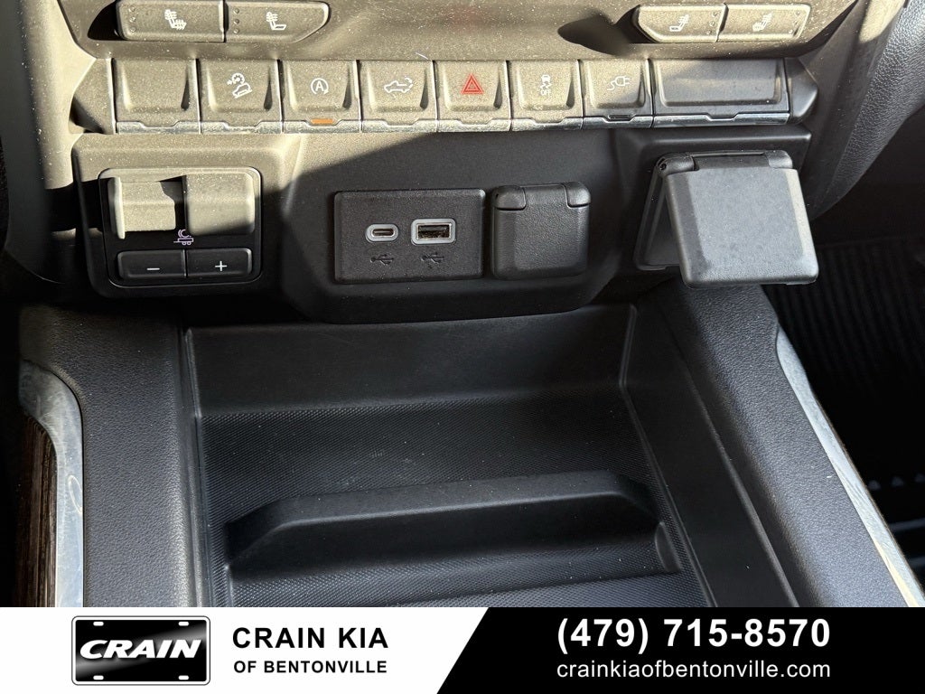 Automatic, 4WD, Jet Black w/Cloth Seat Trim, 10-Way Power Driver Seat Adjuster w/Lumbar, 12-Volt Rear Auxiliary Power Outlet, 220 Amp Alternator, 3.42 Rear Axle Ratio, 4-Way Manual Passenger Seat Adjuster, 4-Wheel Disc Brakes, 4G LTE Wi-Fi Hotspot Capable, 6 Speakers, 6-Speaker Audio System Feature, ABS brakes, Air Conditioning, Alloy wheels, AM/FM radio: SiriusXM, Apple CarPlay/Android Auto, Auto-Locking Rear Differential, Automatic temperature control, Body-Color Surround Grille, Brake assist, Bumpers: body-color, Cloth Rear Seat w/Storage Package, Cloth Seat Trim, Color-Keyed Carpeting Floor Covering, Compass, Deep-Tinted Glass, Delay-off headlights, Driver door bin, Driver vanity mirror, Dual front impact airbags, Dual front side impact airbags, Dual-Zone Automatic Climate Control, Electric Rear-Window Defogger, Electrical Lock Control Steering Column, Electronic Stability Control, Elevation Convenience Package, Elevation Value Package, Front 40/20/40 Split-Bench Seat, Front anti-roll bar, Front Center Armrest w/Storage, Front dual zone A/C, Front fog lights, Front Frame-Mounted Black Recovery Hooks, Front reading lights, Front Rubberized-Vinyl Floor Mats, Front wheel independent suspension, Fully automatic headlights, GMC Connected Access Capable, Heated door mirrors, Heated Driver & Front Outboard Passenger Seating, Heated front seats, Heated Steering Wheel, Heated steering wheel, Heavy Duty Suspension, Hitch Guidance, Illuminated entry, Keyless Open & Start, LED Cargo Area Lighting, Low tire pressure warning, Manual Tilt-Wheel & Telescoping Steering Column, Occupant sensing airbag, OnStar & GMC Connected Services Capable, Outside temperature display, Overhead airbag, Overhead console, Panic alarm, Passenger door bin, Passenger vanity mirror, Power Door Locks, Power door mirrors, Power driver seat, Power Front Windows w/Driver Express Up/Down, Power Front Windows w/Passenger Express Down, Power Rear Windows w/Express Down, Power steering, Power windows, Premium audio system: GMC Infotainment System, Radio data system, Radio: GMC Infotainment Audio System, Rear Dual USB Charging-Only Ports, Rear reading lights, Rear Rubberized-Vinyl Floor Mats, Rear seat center armrest, Rear step bumper, Rear Wheelhouse Liners, Rear window defroster, Remote keyless entry, Remote Vehicle Starter System, Security system, SiriusXM Radio, Speed control, Speed-sensing steering, Split folding rear seat, Steering Wheel Audio Controls, Steering wheel mounted audio controls, Tachometer, Telescoping steering wheel, Theft Deterrent System (Unauthorized Entry), Tilt steering wheel, Traction control, Trailering Package, Trip computer, Variably intermittent wipers, Voltmeter, Wheels: 20 x 9 Black Gloss Painted Aluminum.