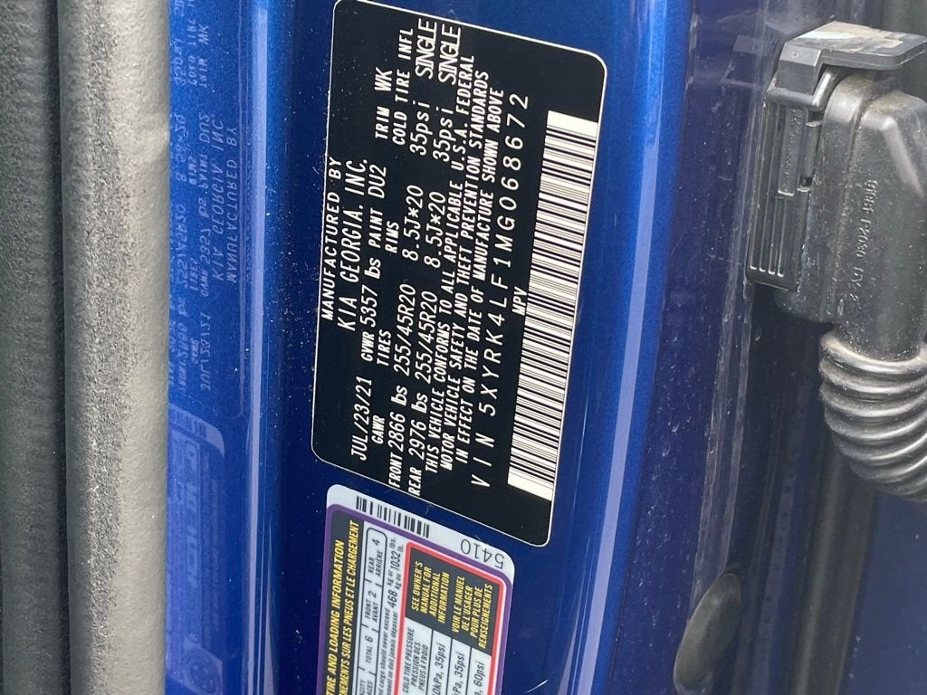 Elevate your driving experience with this captivating 2021 Kia Sorento SX-Prestige. This stunning Blue SUV boasts a powerful 2.5L I4 DGI Turbocharged engine, delivering an impressive 281 horsepower and an exceptional fuel efficiency of 22 MPG in the city and 29 MPG on the highway.- Auto Dimming Mirror w/HomeLink (Plug-N-Play)- Navigation System- 12 Speakers- AM/FM radio: SiriusXM- Automatic temperature control- Power moonroof- Power Liftgate- Auto High-beam Headlights- Apple CarPlay & Android Auto- Heated & Ventilated Front Bucket Seats- Wheels: 20 Gloss Black AlloyDesigned with your comfort and convenience in mind, this Sorento SX-Prestige is equipped with a host of premium features. Indulge in the luxurious Perforated Genuine Leather Seat Trim, while the Smart Key with Push Button and Remote Start ensures a seamless driving experience. The 12-speaker Bose Audio System with Navigation provides exceptional sound quality, and the Automatic Temperature Control keeps you and your passengers in perfect comfort.Safety is paramount, and this Sorento SX-Prestige delivers. Equipped with advanced technologies like Blind Spot Monitoring, Rear Cross-Traffic Alert, and Forward Collision-Avoidance Assist, you can drive with confidence, knowing that you and your loved ones are well-protected.Experience the perfect blend of power, efficiency, and sophistication with this exceptional 2021 Kia Sorento SX-Prestige. Elevate your driving experience and schedule a test drive today. We're confident that this remarkable SUV will exceed your expectations and become the perfect addition to your lifestyle.