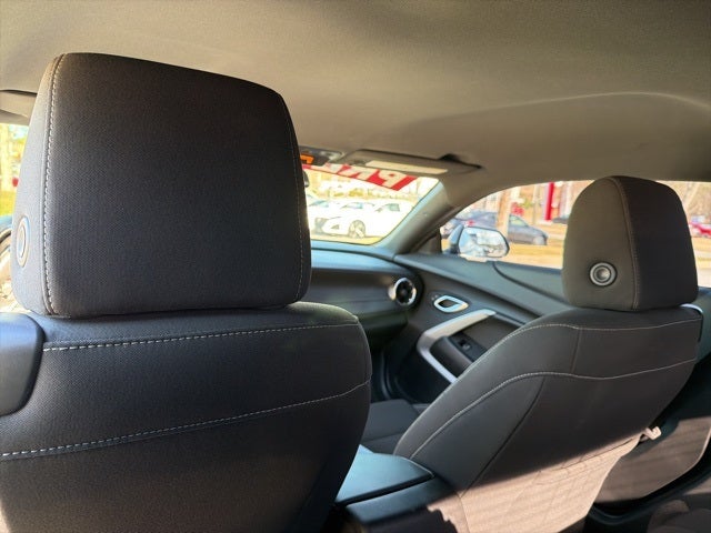 Bluetooth®, Safety Package, Camaro SS 1SS, 2D Coupe, 6.2L V8, 10-Speed Automatic, RWD, Black, Jet Black w/Leather-Trimmed Seat Trim or Leather-Trimmed Seat Trim w/Sueded Inserts, 2.77 Rear Axle Ratio, 4-Wheel Disc Brakes, 6 Speakers, 6-Speaker Audio System Feature, 6-Way Power Front Passenger Seat Adjuster, 8-Way Power Driver Seat Adjuster, ABS brakes, Air Conditioning, Alloy wheels, AM/FM radio: SiriusXM with 360L, Apple CarPlay/Android Auto, Automatic temperature control, Bluetooth® For Phone, Brake assist, Bumpers: body-color, Cloth Seat Trim, Compass, Custom Launch Control, Delay-off headlights, Driver door bin, Driver vanity mirror, Dual front impact airbags, Dual front side impact airbags, Dual Mode Exhaust, Electronic Stability Control, Exterior Parking Camera Rear, Four wheel independent suspension, Front anti-roll bar, Front Bucket Seats, Front Center Armrest, Front reading lights, Front Sport Bucket Seats, Fully automatic headlights, Ground Effects Package, Illuminated entry, Knee airbag, Leather Shift Knob, Low tire pressure warning, Occupant sensing airbag, Overhead airbag, Paddle-Shift Manual Controls, Panic alarm, Passenger door bin, Passenger vanity mirror, Power door mirrors, Power driver seat, Power passenger seat, Power steering, Power windows, Preferred Equipment Group 1SS, Premium audio system: Chevrolet Infotainment System, Radio data system, Radio: Chevrolet Infotainment 3 Plus System, Rear anti-roll bar, Rear window defroster, Red-Painted Calipers, Remote keyless entry, Remote Vehicle Starter System, Security system, SiriusXM w/360L, Speed control, Speed-sensing steering, Spoiler, Steering wheel mounted audio controls, Tachometer, Telescoping steering wheel, Tilt steering wheel, Traction control, Trip computer, Variably intermittent wipers, Voltmeter, Wheels: 20 x 8.5 Fr & 20 x 9.5 Rr 5-Spoke Alum.