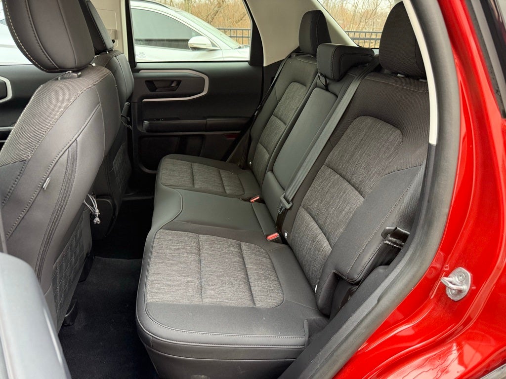 2023 Ford Bronco Sport 4WD 1.5L EcoBoost 8-Speed Automatic Bronco Sport Big Bend MUST SEE, 4D Sport Utility, 1.5L EcoBoost, 8-Speed Automatic, 4WD, Hot Pepper Red Tinted Clearcoat, Ebony Cloth, 3.80 Axle Ratio, 4-Wheel Disc Brakes, 4G LTE Wi-Fi Hotspot Credit, 6 Speakers, ABS brakes, Air Conditioning, Alloy wheels, AM/FM radio: SiriusXM, AM/FM Stereo, Auto High-beam Headlights, Automatic temperature control, Brake assist, Compass, Convenience Package, Delay-off headlights, Driver door bin, Driver vanity mirror, Dual front impact airbags, Dual front side impact airbags, Electronic Stability Control, Emergency communication system: SYNC 3 911 Assist, Equipment Group 200A, Four wheel independent suspension, Front anti-roll bar, Front Bucket Seats, Front Center Armrest, Front Driver & Passenger Seatback Zipper Pockets, Front reading lights, Fully automatic headlights, Heated door mirrors, Heated Front Bucket Seats, Illuminated entry, Intelligent Access (Lock/Unlock), Knee airbag, Leather-Wrapped Steering Wheel, LED Fog Lamps, Low tire pressure warning, Occupant sensing airbag, Outside temperature display, Overhead airbag, Overhead console, Panic alarm, Passenger door bin, Passenger vanity mirror, Power door mirrors, Power steering, Power windows, Radio data system, Rear anti-roll bar, Rear Parking Sensors, Rear reading lights, Rear seat center armrest, Rear window defroster, Rear window wiper, Remote keyless entry, Security system, SiriusXM, Speed control, Speed-sensing steering, Speed-Sensitive Wipers, Split folding rear seat, Steering wheel mounted audio controls, SYNC 3 Communications & Entertainment System, SYNC 3/Apple CarPlay/Android Auto, Tachometer, Telescoping steering wheel, Tilt steering wheel, Traction control, Trip computer, Unique Cloth Front Bucket Seats, Universal Garage Door Opener (UGDO), Variably intermittent wipers, Wheels: 17 Carbonized Gray-Painted Aluminum, Wireless Charging Pad. CARFAX One-Owner.