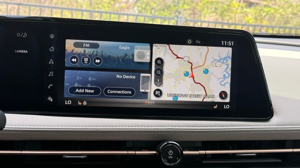 - Radio: AM/FM Audio System -inc: 12.3" color dual display, navigation w/voice recognition (english, french and spanish), 6 speakers, MP3/WMA playback, Bluetooth® streaming audio, speed-sensitive volume control (SSV), satellite radio pre-wiring, wireless CarPlay, tethered Android Auto, SiriusXM, SiriusXM Travel Link, NissanConnect EV, Bluetooth® hands-free phone system (w/voice recognition in english, french and spanish), voice destination entry (VDE) and hands-free text messaging assistant