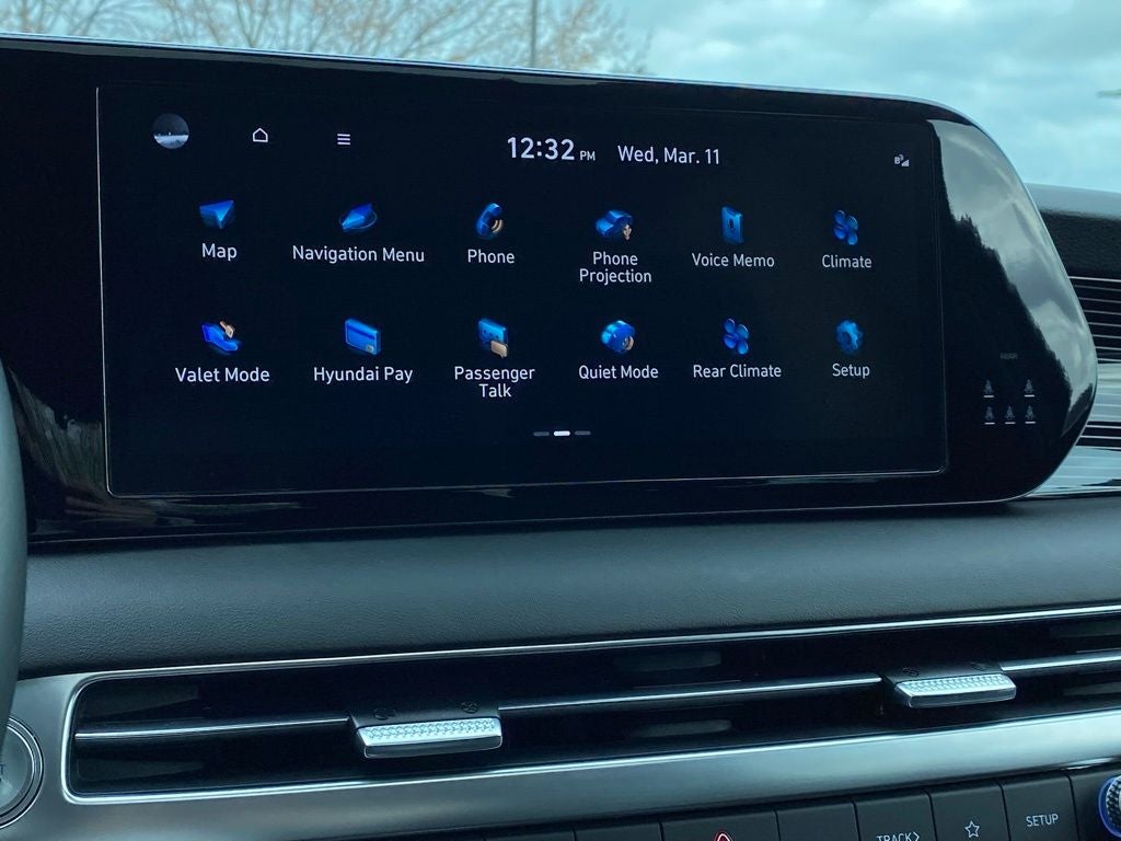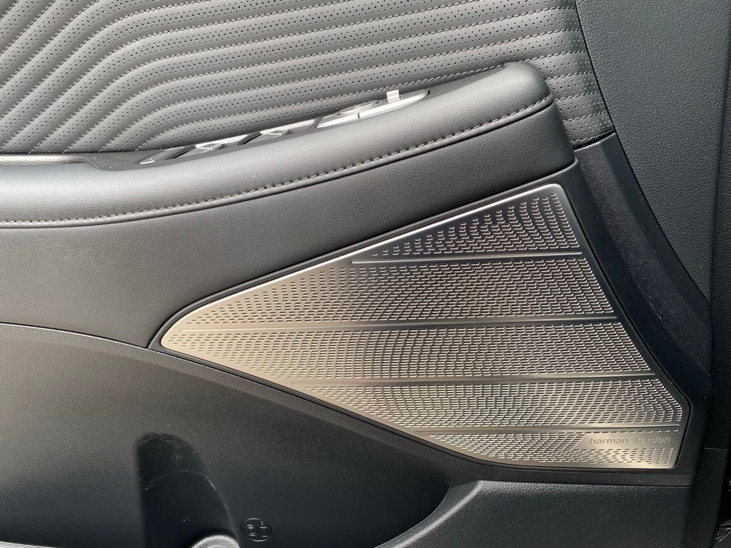 - Radio: AM/FM/MP3 Premium Audio System -inc: 630-Watts, Harman Kardon audio system w/12-speakers, Quantum Logic Surround, Clari-Fi, 12.3" color touchscreen display, onboard navigation w/traffic flow including incident data via HD Radio (HERE), Over-the-Air (OTA) map updates, SiriusXM, Android Auto and Apple CarPlay, USB, dynamic voice recognition, rear seat quiet mode, passenger talk (in-car intercom), Bluetooth® hands-free connectivity w/multiple device connection and Bluelink Connected Car System